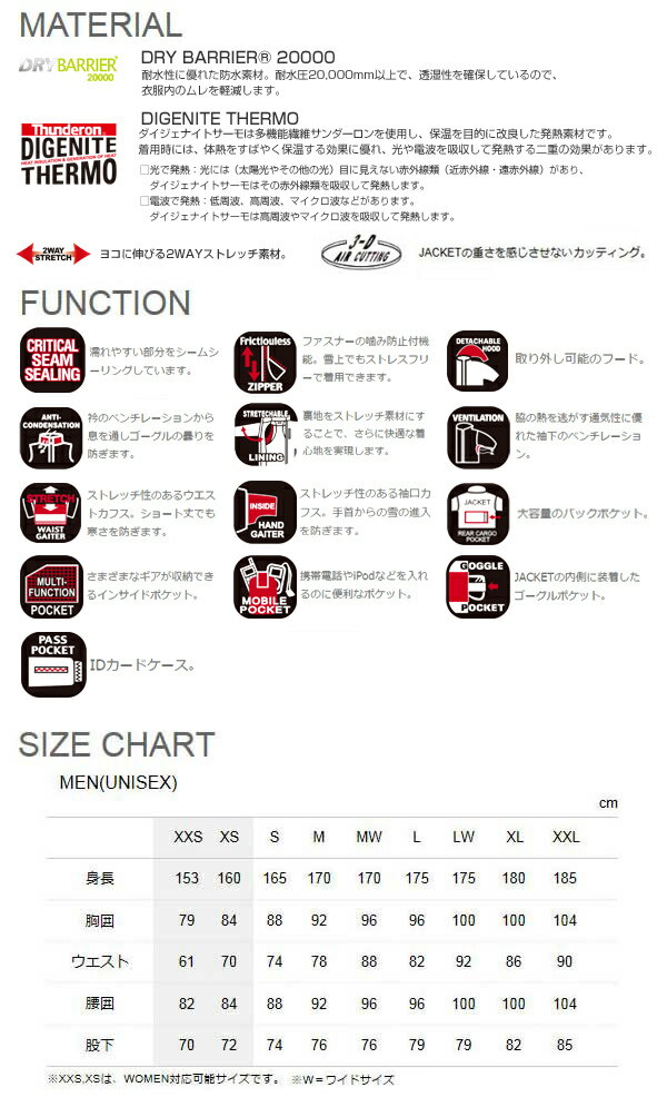 メーカー希望小売価格はメーカーサイトに基づいて掲載しています PHENIX フェニックス スキーウェア ■Demo Team Jacket PF772OT12 ●素材 <表> ・2-wayストレッチタフタ2L (ポリエステル100%) <裏> ・ブラッシュドディンプルメッシュ(ポリエステル100%) ・ハイデンシティータフタ(ポリエステル100%) ・4-wayストレッチトリコット (ナイロン84%、ポリウレタン16%) <中わた> ・ダイジェナイトサーモ (ポリエステル94%、アクリル6%) ・ポリエステル 着丈:75cm(L) ・アシンメトリーデザイン ・カラーブロックとソリッドカラーで多彩なコーディネートが可能 ・イエローポイントカラーアクセント ・胸と袖IDカードケース ・DRY BARRIER 20000 ・DIGENITE THERMO ・2WAY STRETCH ・3-D AIR CUTTING