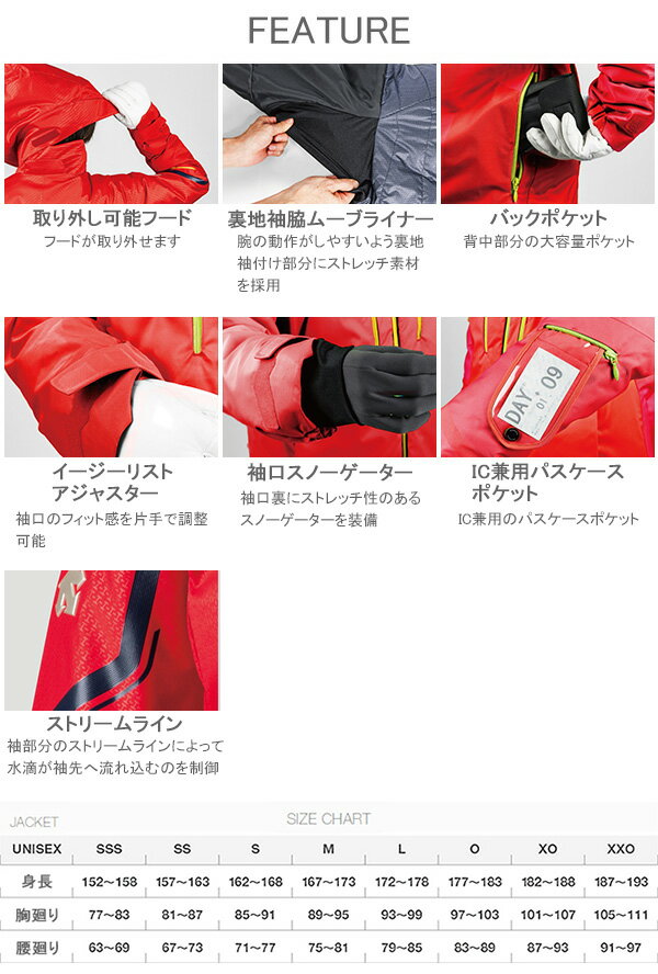 メーカー希望小売価格はメーカーサイトに基づいて掲載しています DESCENTE デサントスキーウェア ■S.I.O JACKET 60/STREAM LINE CMP-7105 FABRIC ・ユニストレッチエンボス(ポリエステル100%) ・ユニストレッチ(ポリエステル100%) INSULATION ・60g中綿(ポリエステル100%) LINING ・タフタ(ポリエステル) PROCESSING: 耐水圧 10,000mm 透湿性 4,000g/m2/24h[A-1] ・S.I.O CONCEPT ・STREAMLINE ・HEAT NAVI 自由な組み合わせで、パーソナルでもチームでも。