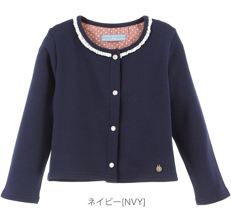 カジュアル子供服 ノーカラーシンプル&ガーリーカーディガン 裏起毛 ノーカラーシンプル&ガーリーカーディガン <<裏起毛タイプ>> Catherine Cottage すっきり見えて実はあったか! うっとり触感のシンプルガーリーカーディガン 女の子らしさ溢れるディテールを盛り込んだカーディガン。