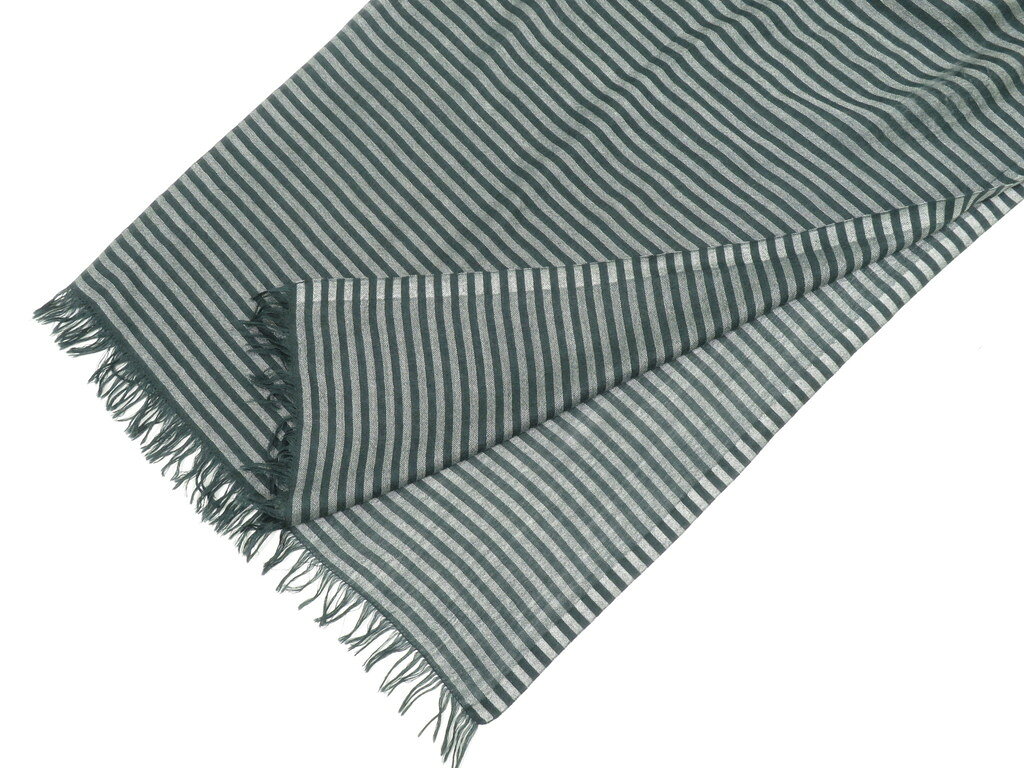 【中古】クルチアーニ Cruciani シルクカシミア系 ボーダー柄 ストール ダークグリーン×ホワイト【サイズ−】【GRN】【A/W】【状態ランクB】【メンズ】【19904-955775】[2103APD]