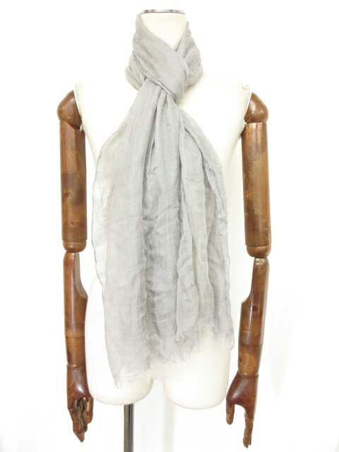 極美品 【クルチアーニ Cruciani】 シルク混 薄手のロングストール (メンズ/レディース) ライトグレー系 イタリア製 □7ME3163□【中古】